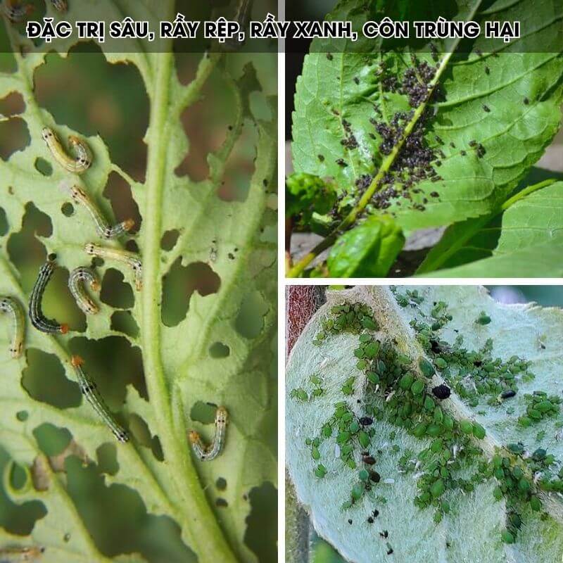 - Đặc trị rệp muồi, rầy hại lá, bọ phấn, rệp sáp, rầy xanh, bọ cánh tơ, bọ xít muỗi, ruồi vàng