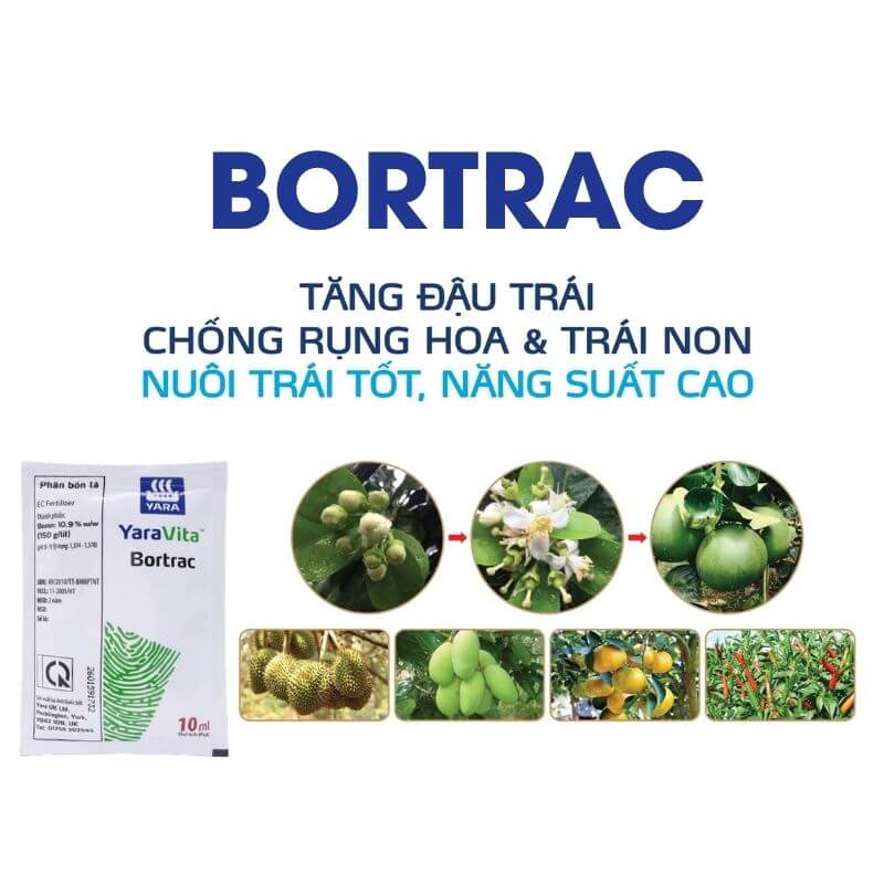 Botrac hợp trí là dòng phân bón vô cơ, thành phần chính bao gồm Bo với tỉ lệ 150.000 mg/L, sản phẩm giúp Làm tăng sức sống hạt phấn, kéo dài ống phấn, tránh rụng bông, cho cây đậu nhiều trái, tăng hấp thu Canxi, Magie và Kali, cân bằng đường bột từ đó nâng cao phẩm chất của trái.