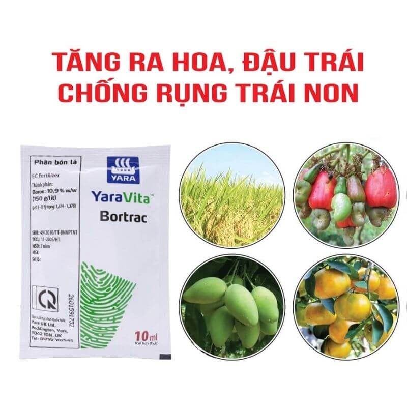• Làm tăng sức sống hạt phấn, kéo dài ống phấn, tránh rụng bông, cho cây ĐẬU TRÁI NHIỀU.