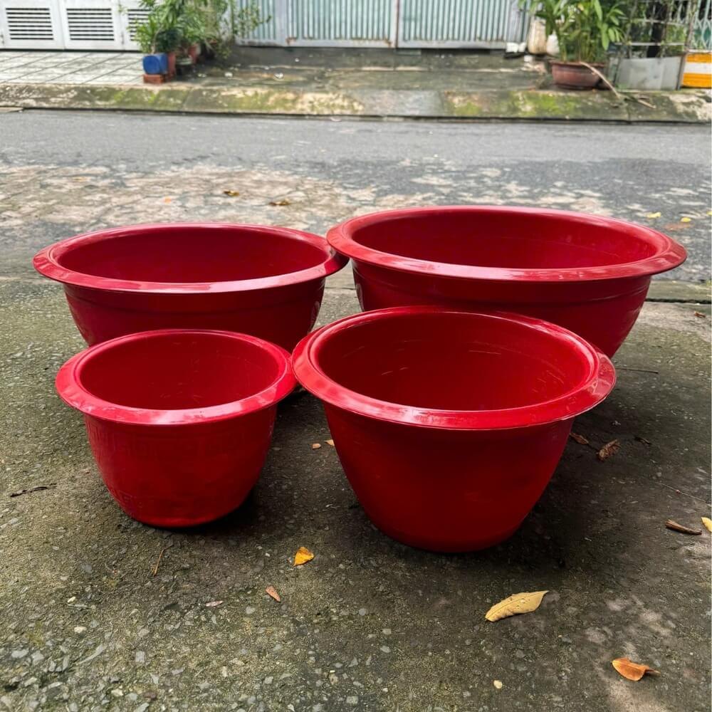 Chậu Truyền Thống Trồng Cây Kiểng Chất Liệu Nhựa Bền AD Màu Đỏ
