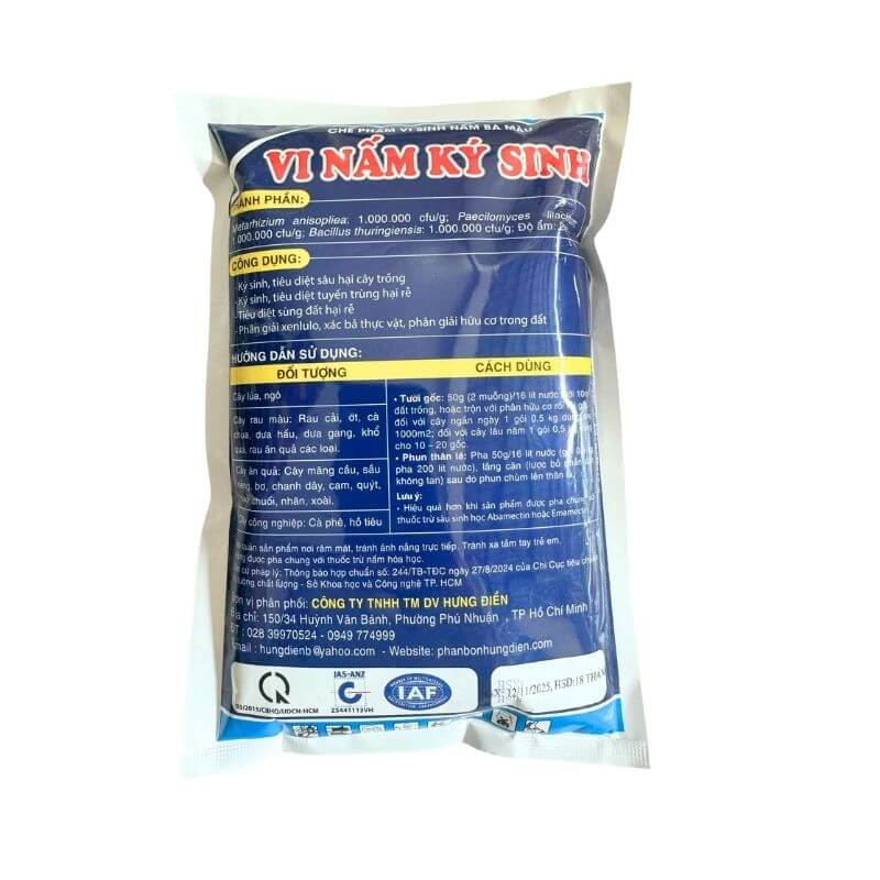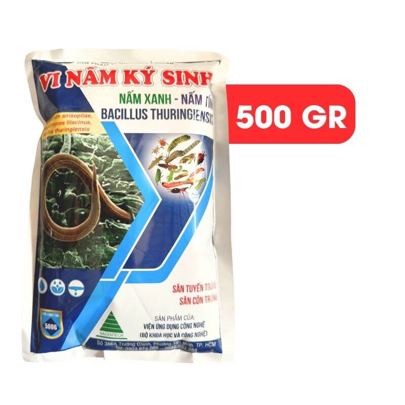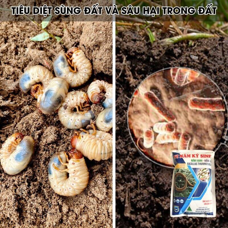 Chế phẩm vi sinh - vi nấm ký sinh chứa các chủng vi sinh có lợi như nấm xanh, nấm tím và Bacillus Thuringiensis (BT) có khả năng ký sinh trên cây trồng và tiêu diệt sâu hại trong đất một cách an toàn và thân thiện với môi trường.