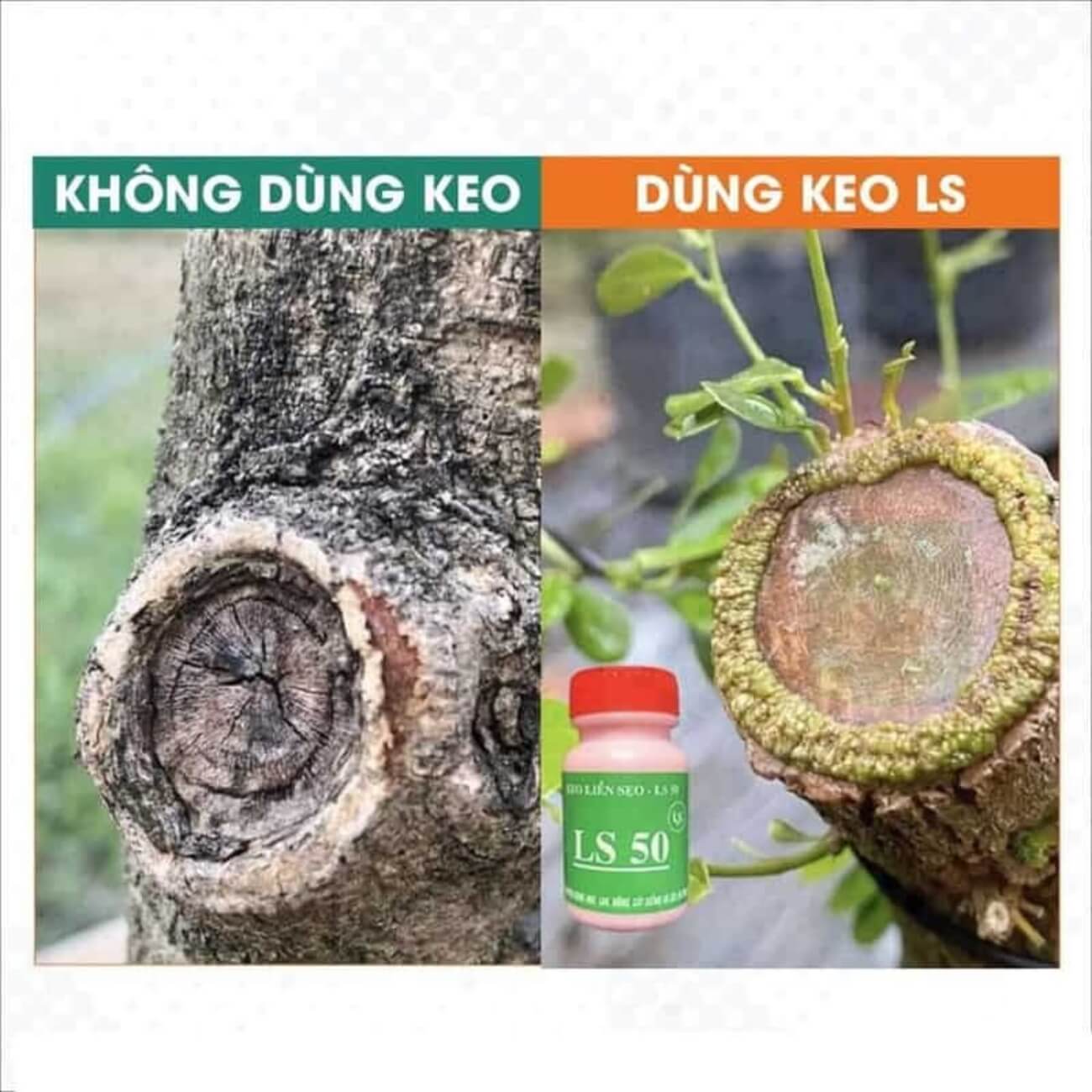 + Keo làm liền sẹo cây LS50: Với các vết cắt hoặc mặt trên trên thân cây, nên để khô nhựa cây sau đó bôi keo LS50 lên mặt cắt để làm liền sẹo cây.