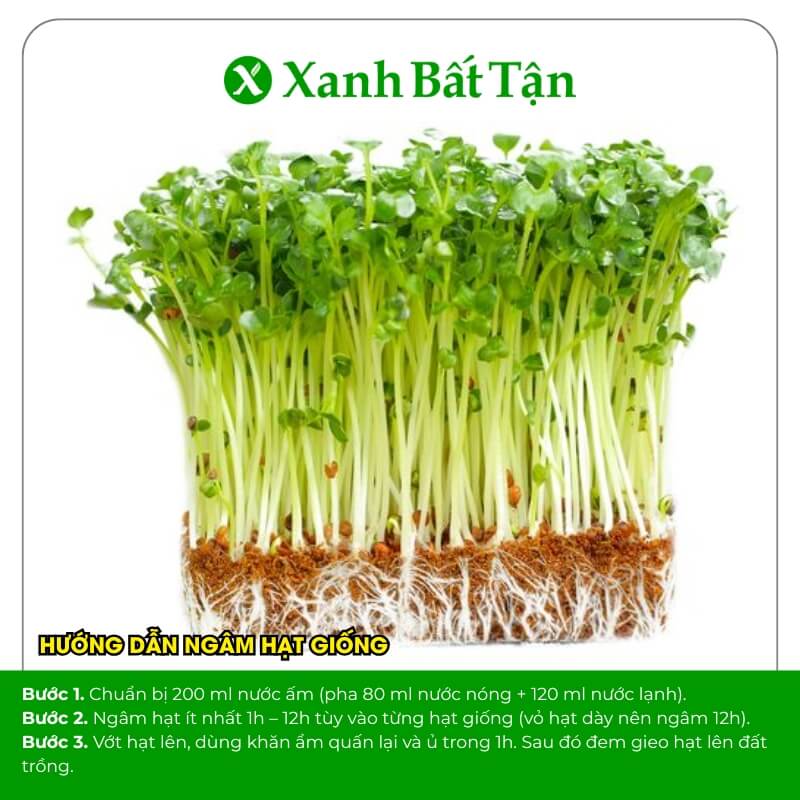 Ngâm hạt trong nước ấm 3-4h, Giống tròng lấy mầm nên có thể trồng quanh năm. Tuy nhiên trồng ở nơi có ánh sáng nhẹ, tránh nơi có ánh nắng chiếu và mưa trực tiếp.