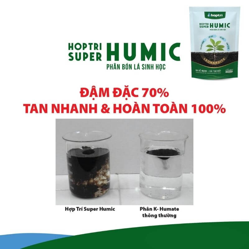Humic hợp trí hay còn gọi là hợp trí super humic là dòng sản phẩm được chiết xuất từ mỏ leonardite hàng trăm triệu năm tuổi, với thành phần chính là humic chiếm tới 70%. Sản phẩm được dùng để kích rễ, cải tạo đất, làm đất tơi xốp, giải độc cho cây, cân bằng pH cho đất.